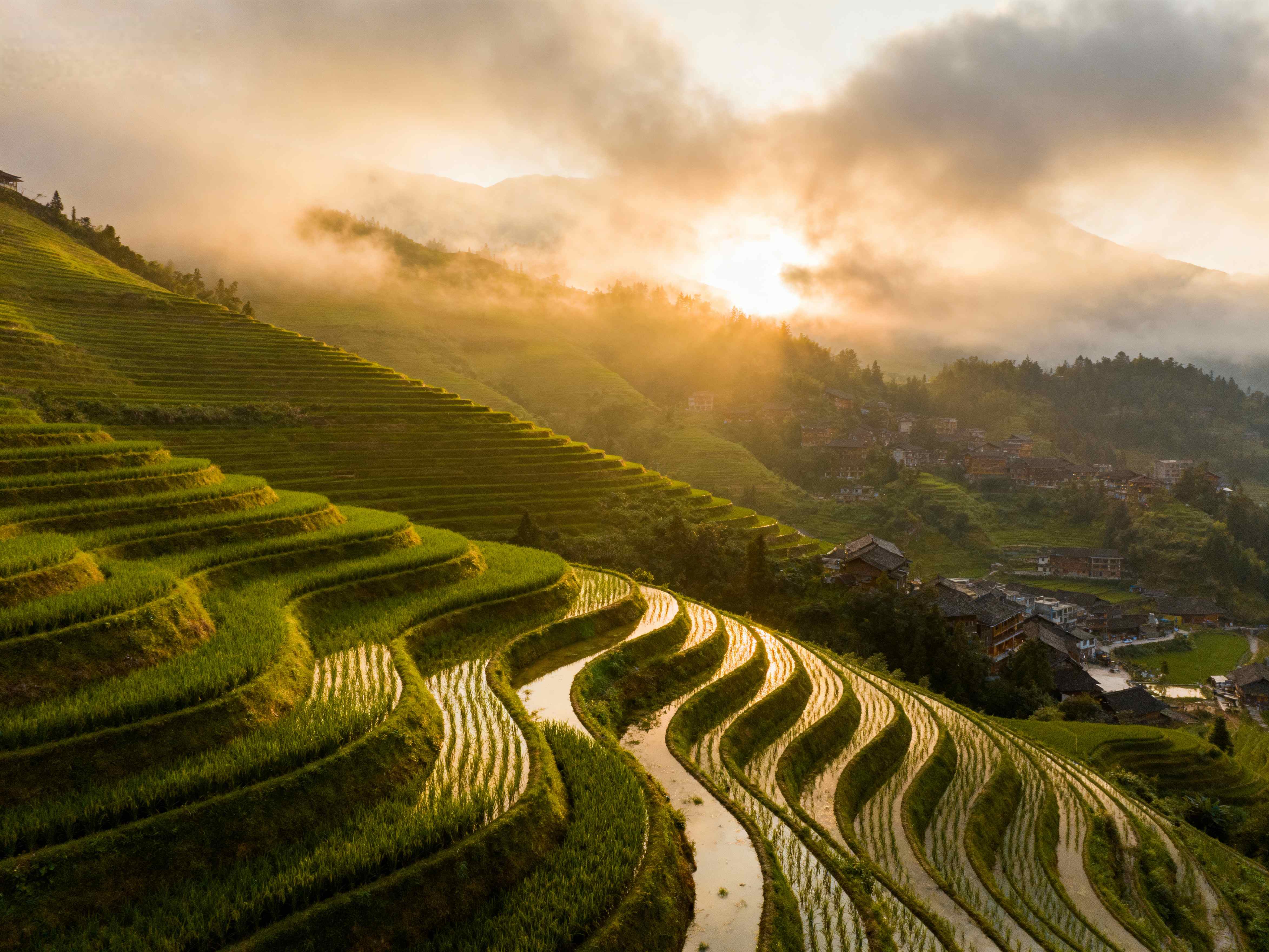 Stunning rice terraces carved into mountains by Zhuang and Yao minorities. Best in May-June (green) or September (golden).