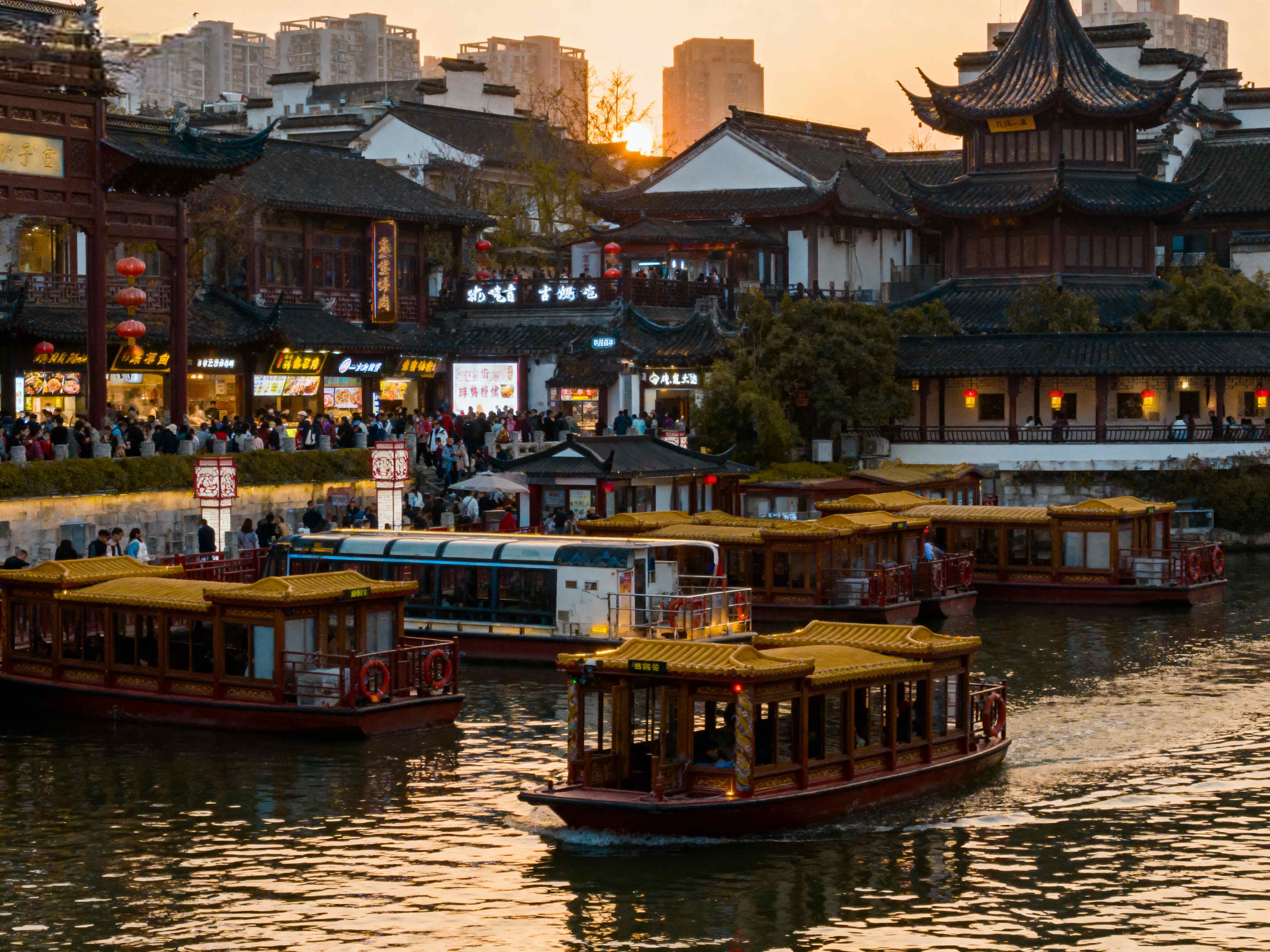 Historic temple complex with Qinhuai River, night market, and traditional architecture.