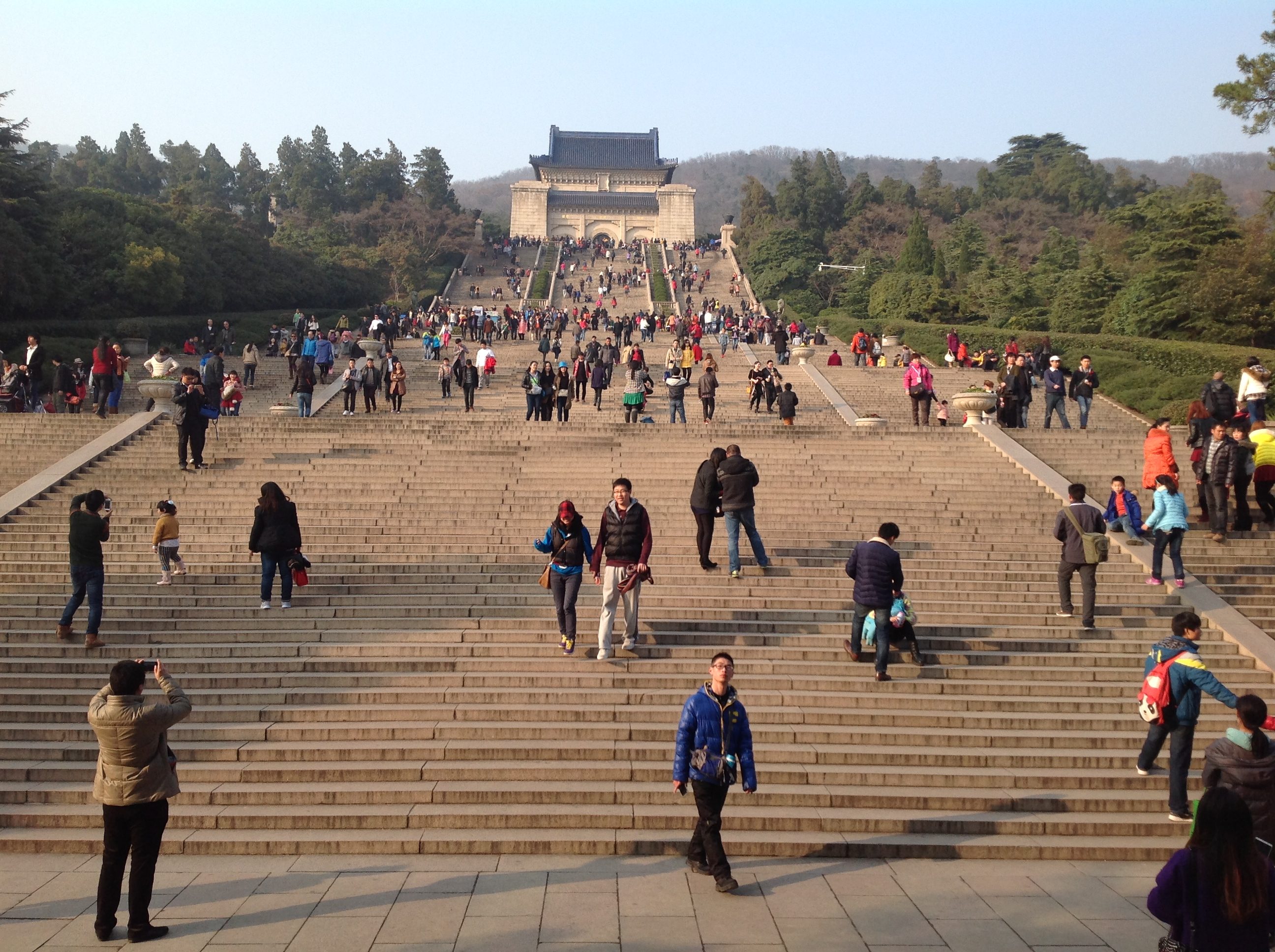 Grand mausoleum of China's founding father. 392 steps up Purple Mountain. Stunning architecture and history.