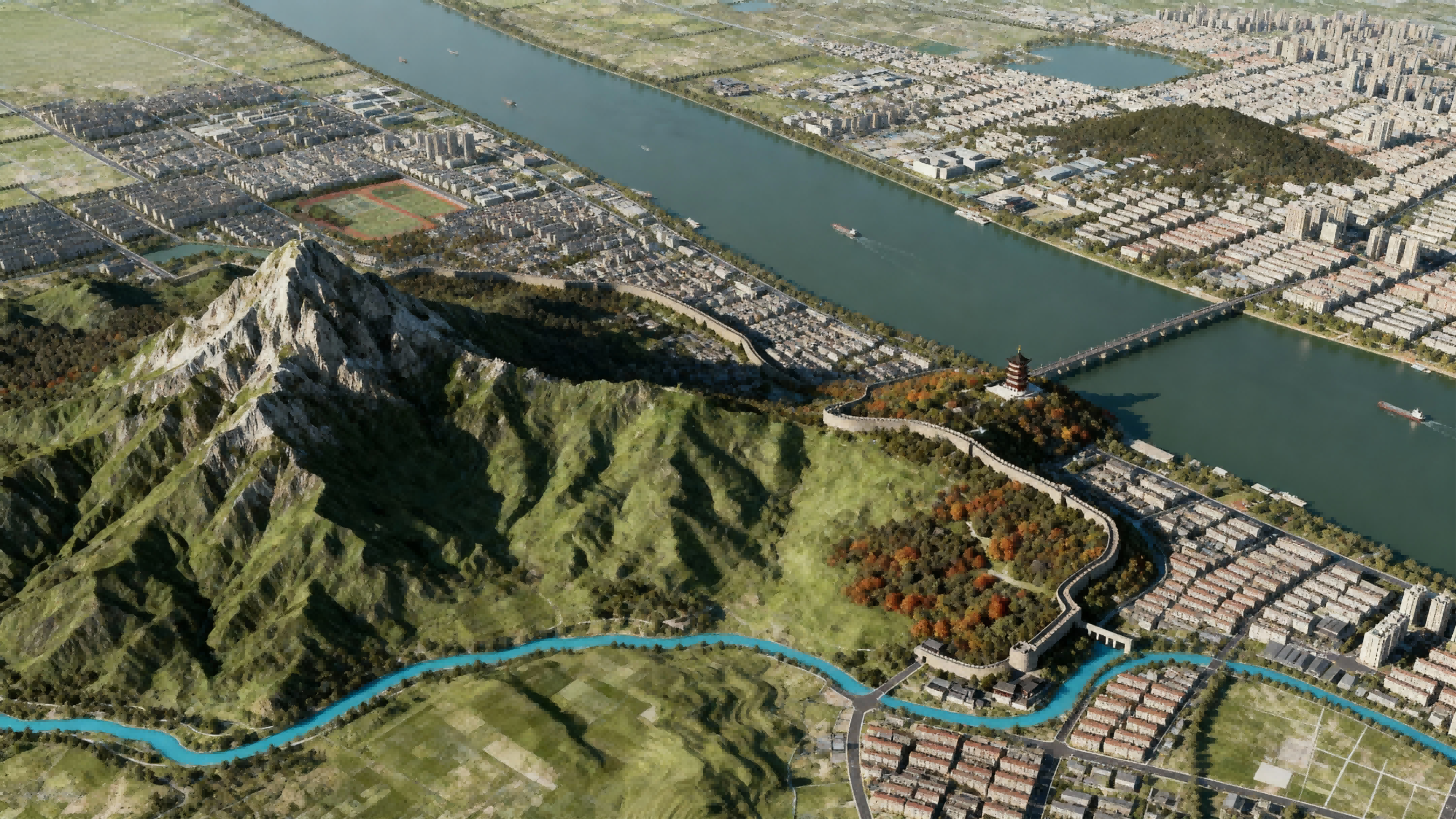 Located on the northern edge of the Yangtze River’s middle and lower plains, where it meets the North China Plain, Nanjing enjoys broad and fertile land. It has long been a crossroads of north–south transportation. The Yangtze River winds through the city like a mighty dragon, dividing it into two parts—the north bank grand and solid, the south bank graceful and serene.