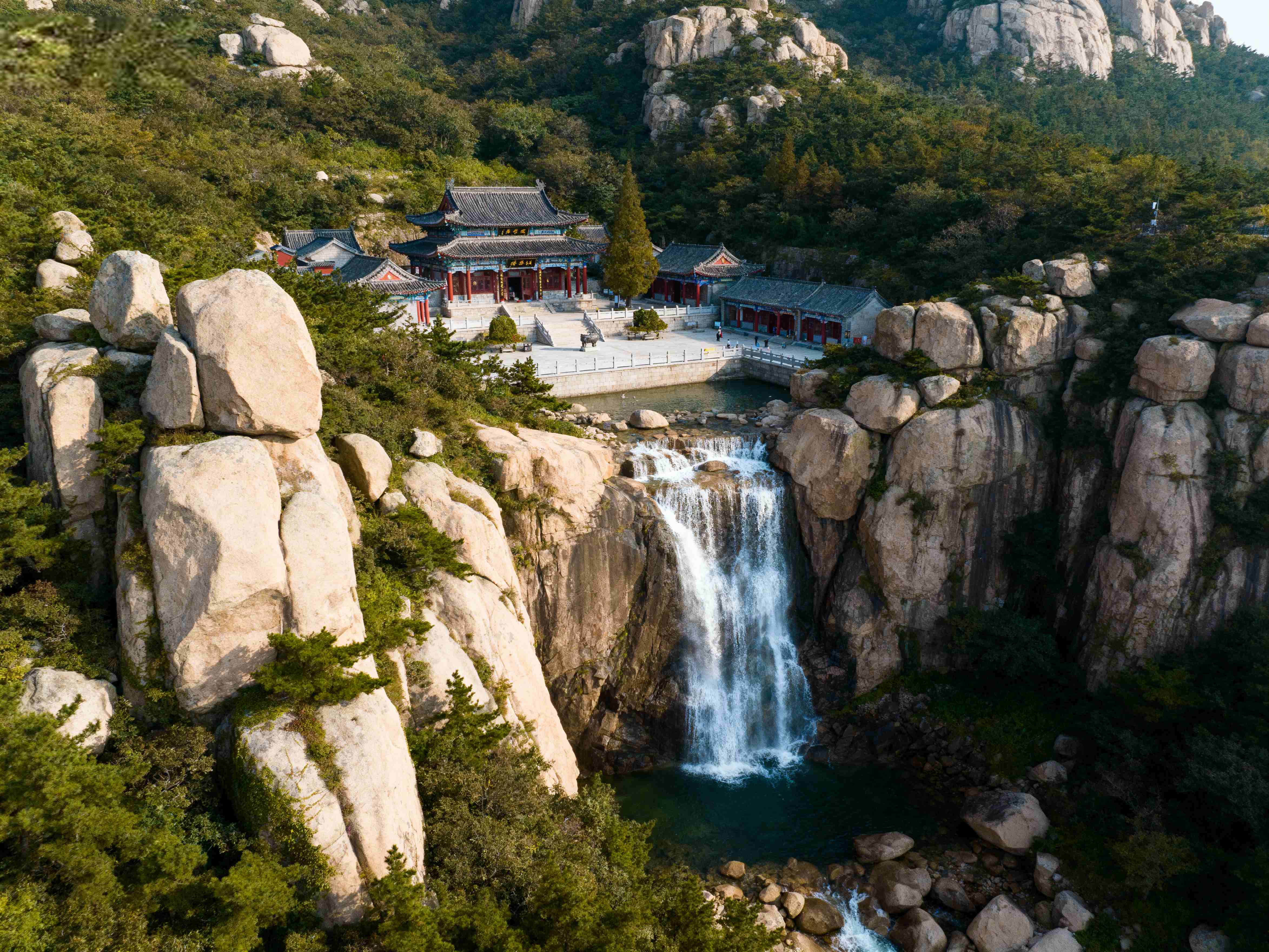 Sacred Taoist mountain by the sea. Temples, waterfalls, and coastal hiking trails. Laoshan mineral water source.