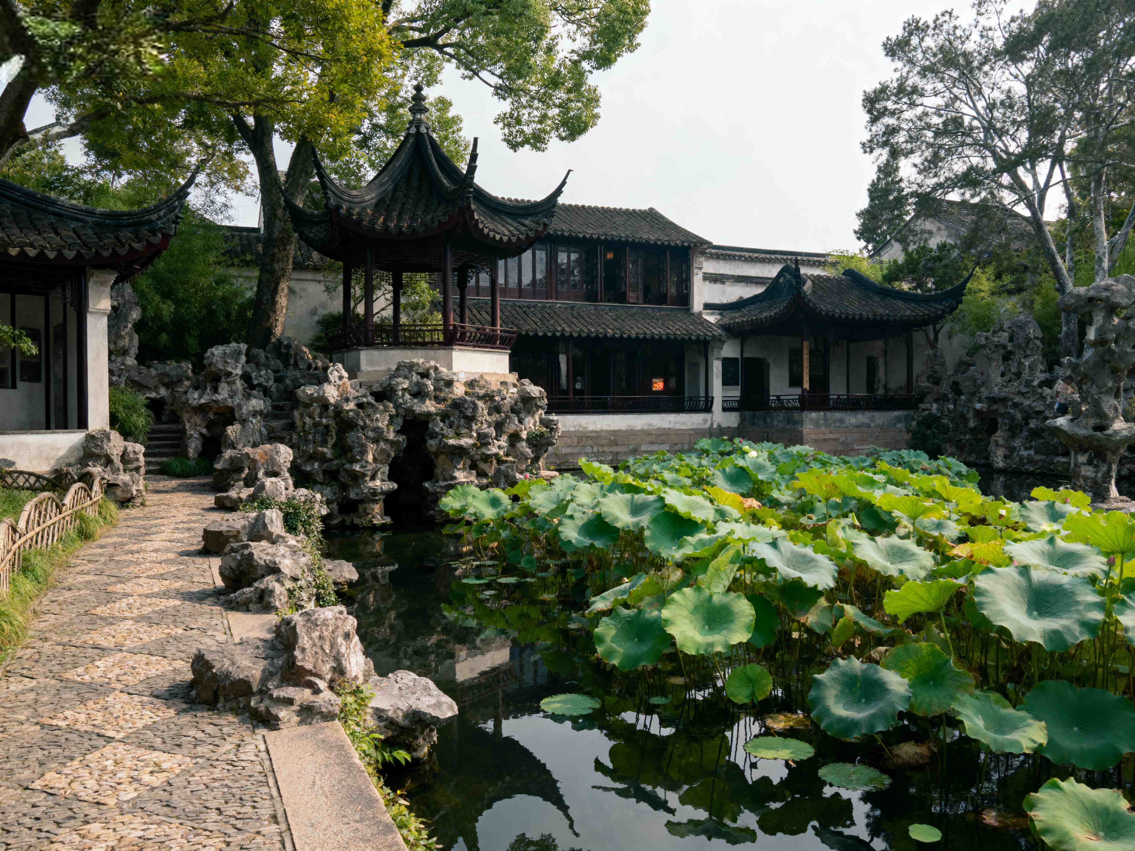 Largest and most famous classical garden in Suzhou. UNESCO World Heritage Site with ponds, pavilions, and rockeries.