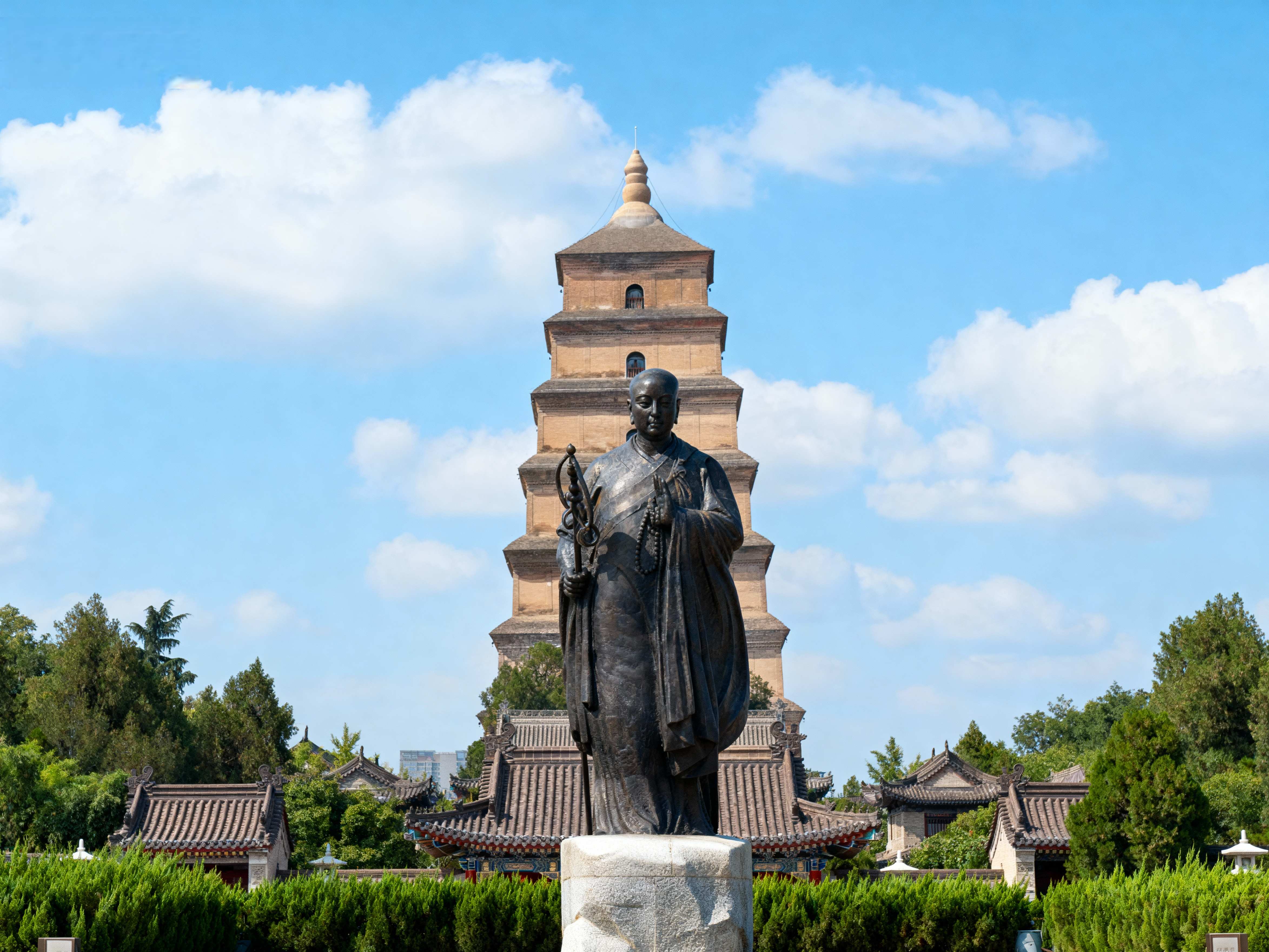 After visiting the Terracotta Army, we headed to the Big Wild Goose Pagoda. The pagoda stood tall and majestic, with the sound of eaves chimes gently filling the air. In the square, there was a statue of Tang Sanzang (the monk from Journey to the West). It was at that moment that I realized this was the starting point of Tang Sanzang’s legendary journey to obtain Buddhist scriptures. I suddenly felt that history was no longer confined to the pages of a textbook but was something tangible and real.