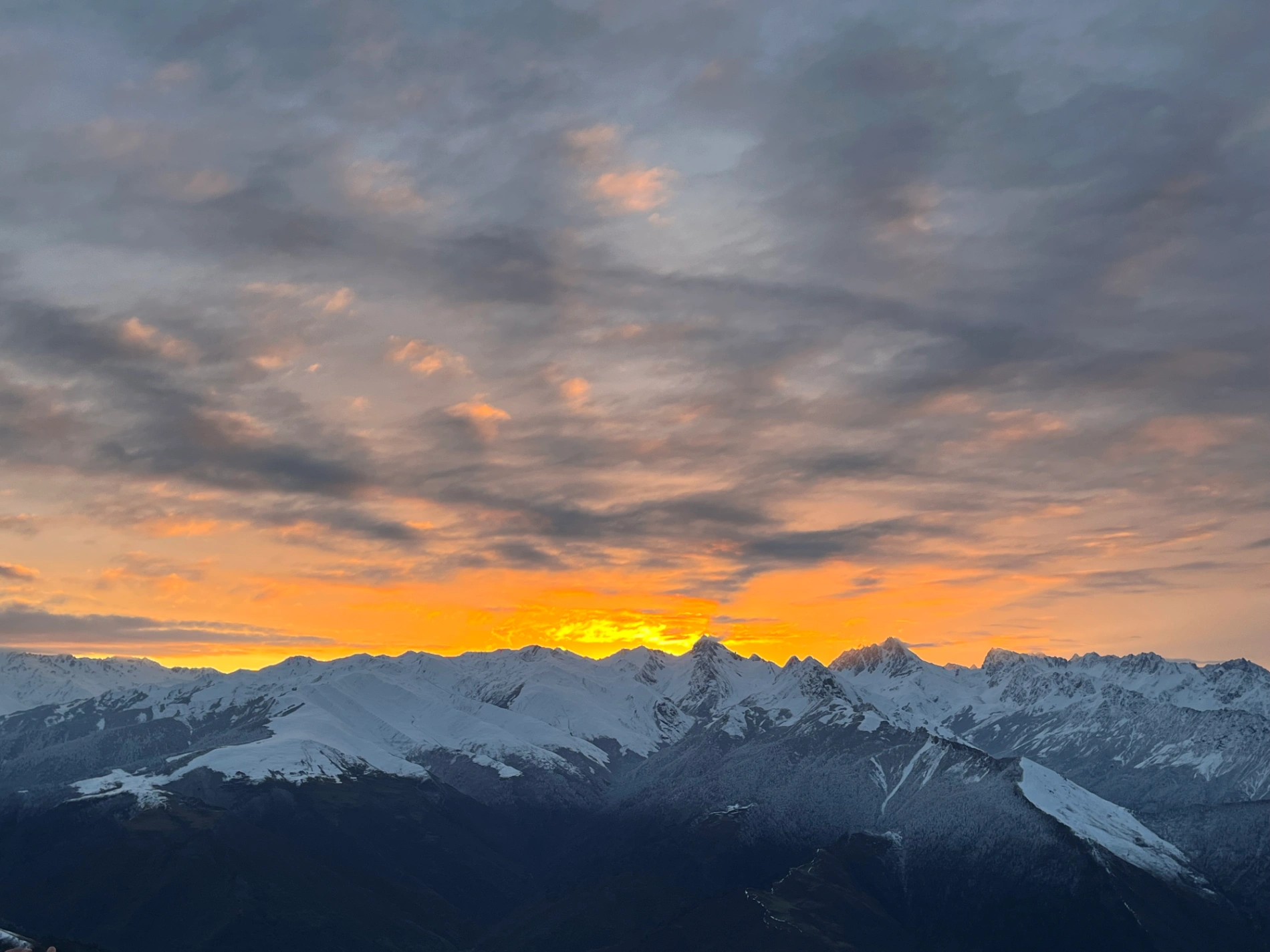 This picture was taken in 2022 at the Dawagengzha Scenic Area in Ya'an. I got up at 3 AM to photograph the 'Sun-kissed Golden Mountain' (Rizhao Jinshan) on the snow-capped peaks in the early morning.