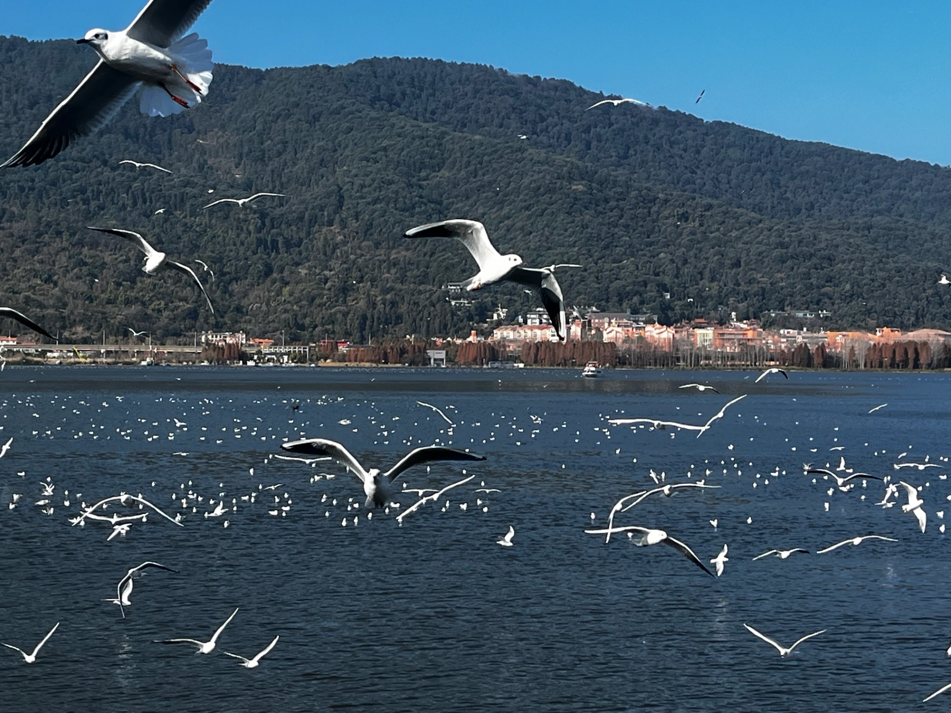 This one was taken in 2024 at Dianchi Lake. The birds in the picture are Black-headed Gulls. Every winter, a large number of Black-headed Gulls migrate from Siberia to Kunming.